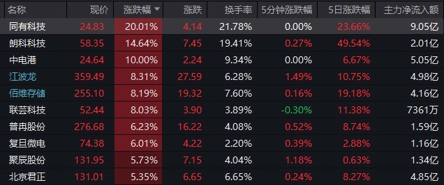存储器概念大涨,同有科技20.01%涨停,朗科科技涨超13%,中电港10%涨停。佰维存储盘中涨超10%,最高价报259.99元,再创历史新高。江波龙、复旦微电、普冉股份、北京君正等涨幅居前。