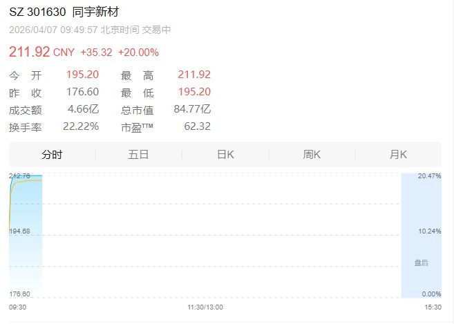 覆铜板概念中,同宇新材开盘一字涨停,涨幅20%。公开信息显示,公司是中高端覆铜板行业电子树脂供应商,通过服务覆铜板行业客户,公司产品最终主要应用于计算机、消费电子、汽车电子、通讯等领域。