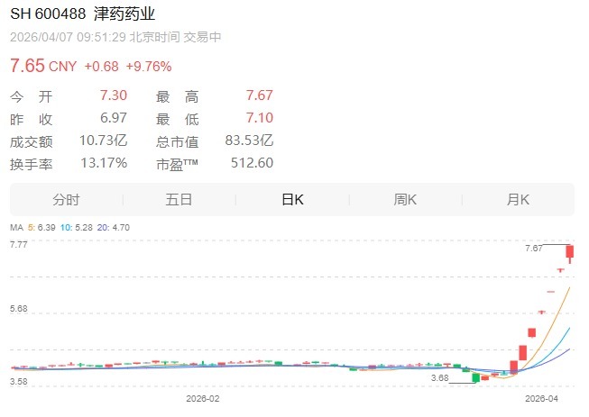 津药药业开盘涨停后开板,此前该股已7连板。