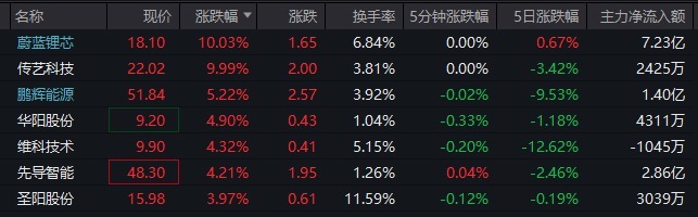 其他热门个股中,新能泰山今日9.93%涨停,成功实现10天8板,最新总市值82亿元。